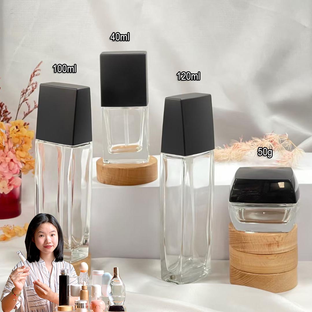 لوشن زجاجي للعناية بالبشرة 150ml120ml100ml مخصص لتعبئة مستحضرات التجميل عبوة 30 برطمان Essence وزجاجة كريم 50 جم
